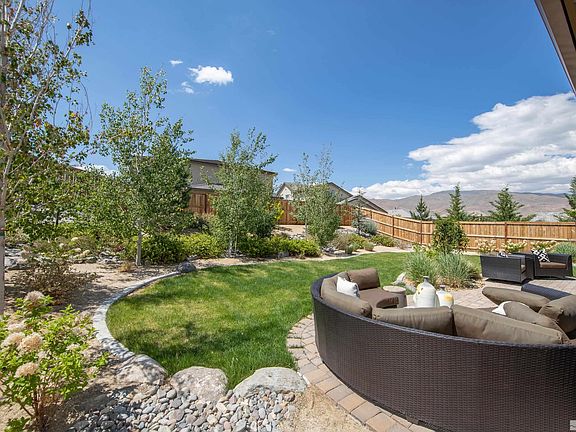Luxury former MODEL HOME in Verdi, NV. Over $230,000 in upgrades. MAIN FLOOR Primary bedroom & office. Artisan light fixtures throughout, metal & wood stair railing, wood-plank tile throughout main floor except bedroom & office. Chef's kitchen with walnut cabinets to ceiling, pot-filler, walk-in pantry, & huge island. Control 4 Home Automation System. 8' doors & high ceilings. Lush backyard w/large paver patio. So quiet inside and in backyard. See 360 tour. 24 hr notice to show. See extended remarks., From the custom window coverings, to the designer light fixtures, and custom tile accent walls...it is clear this home is truly special. Over $50,000 in backyard landscaping to sit out and enjoy the mountain views. So many beautiful upgrades including walnut cabinets throughout, a wood entertainment center in the living room and office, built-in cabinets in the mud room and laundry, oil rubbed bronze fixtures, a pot-filler over the cooktop, insulated garage and between floors, primary closet with built-in closet system, and a 36" KitchenAid counter depth fridge. All furnishing and décor available for purchase outside of escrow – inquire for more details. Located in the Meridian 120 community of Verdi, NV - convenient to Hwy 80 and the back entry to Old Town Verdi.