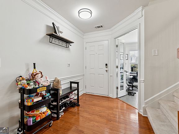 Welcome to your new home in the Woodlands! Fantastic Townhome, One of the largest floor plan in this Townhome community features a den/office with french doors on main floor, stainless appliances. Upstairs, there are 4 bedrooms, with an oversized master bedroom, large walk-in closet, master bath with double vanities and tons of natural light! New HVAC, updated lighting, Main level features, Garage opendoor works with digital application. LOVE that the only thing that attaches these town homes are the storage sheds. AWESOME! This home is sure to please and is located in the amenity rich Woodlands off hwy 92 in Woodstock. Enjoy the amenities in the community with tennis courts, pool with waterslide, nature trails, playground and more! Award Winning Schools. Amazing Location. Priced Right and Move in Ready. HURRY!