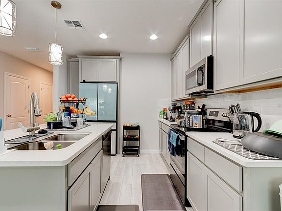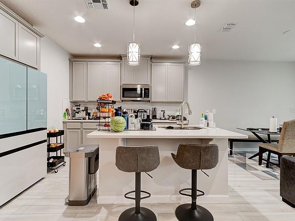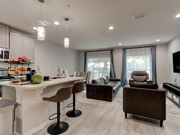 Welcome Home! This beautifully upgraded 3-bedroom, 2.5-bath townhome with a 1-car garage is move-in ready and packed with features you'll love. Step into an open-concept floor plan with neutral tones and no carpet on the first floor. The modern kitchen boasts quartz countertops, stainless steel appliances, and overlooks the spacious living area, which opens to a screened-in back porch with a privacy screen on one side perfect for relaxing or entertaining. Upstairs, you'll find all three bedrooms, including a generously sized primary suite with a large walk-in closet and en-suite bathroom featuring dual sinks. The split floor plan adds privacy, and a loft area provides a flexible space ideal for a family room or home office. The two additional bedrooms share a full bathroom. Additional highlights include: One-car garage with a Tesla charger already installed Brick paver driveway with extra length for additional parking Gated community with a pool just steps from your front door Zoned for highly rated A-rated schools, including gifted and charter programs Easy access to major routes including I-4 This home offers comfort, convenience, and style in a sought-after location. Don't miss it!