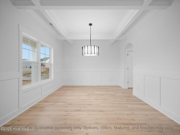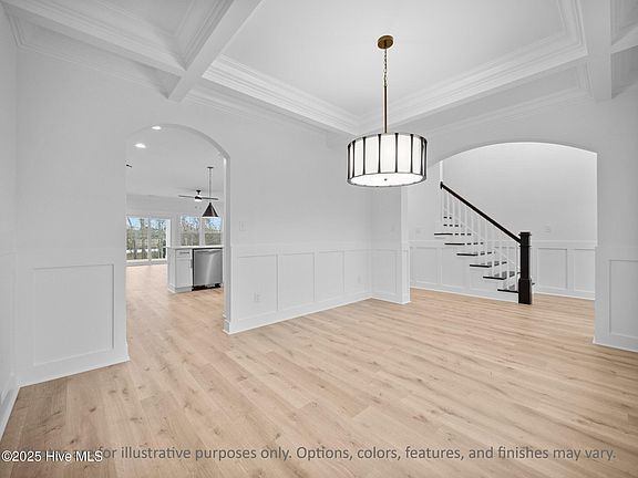 Elegant details throughout include crown molding, luxury vinyl plank and tile flooring, and recessed lighting, all carefully chosen to enhance the home's coastal-inspired style.