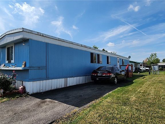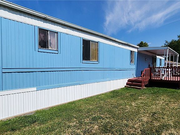 Welcome to 287 Fox Hunt Dr! This move-in ready 2-bedroom, 2-bath home offers 980 sq. ft. of comfortable living in a desirable all-age, pet-friendly community. Step inside to an inviting open-concept kitchen and living room with beamed ceilings, vinyl wood-look floors, and a cozy dining area. Sliding glass doors lead out to a covered deck—perfect for relaxing or entertaining. The kitchen comes fully equipped, with all appliances included (washer & dryer excluded). The spacious primary suite is conveniently located off the kitchen and features a large vanity and walk-in shower. Additional highlights include first-floor laundry, updated hot water tank, refurbished side deck, blacktop driveway, storage shed, updated heat tape and skirting. Community perks include $500/month lot rent that covers water, a clubhouse, private mailbox, and access to the inground swimming pool. Truly an easy-living home ready for its next owner!