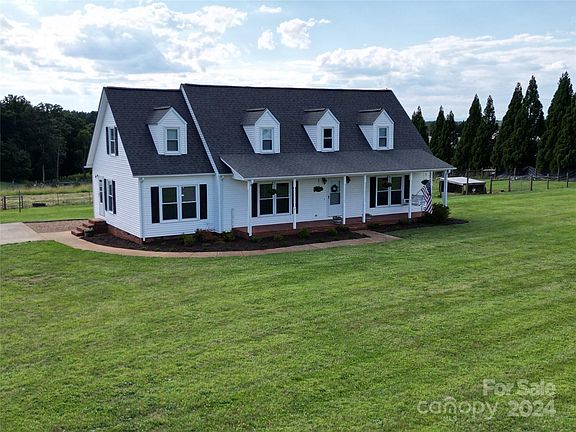 THIS PROPERTY OFFERS IT ALL! Spacious Cape Cod style home on 2 acres w/ a beautiful country setting! Mini-farm ready w/ small pasture for a couple of horses/cows/goats as well as 2 additional large dog pens! Home features the primary bedroom & a guest bedroom w/ 2.5 bathrooms on the main level & 2 large bedrooms w/ full bath & additional sitting/living area on the upper level. Main level also offers formal dining room or den, living room, kitchen, laundry room, & kitchen dining area. Relax on the fully covered front porch or rear deck and enjoy your rural setting. Detached metal building, chicken coop, & additional sheds are located on the property as well. Fresh landscaping & interior paint, new blinds in many rooms, new tile flooring in primary bath, newer water heater, newer HVAC (1 of the 2 units), & many new light fixtures/ceiling fans throughout. 5 minutes from Harmony, 20 minutes from Statesville & 20 minutes from Mocksville. Move in ready, don't miss out!