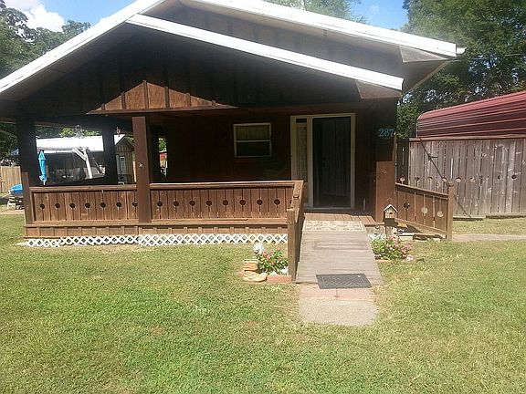Peaceful Cabin Lake Livingston access 1 street away, 3 fenced lots on paved deadend, 50’ covered porch, 4 sheds, Great Diamond in rough! Amazing price!
