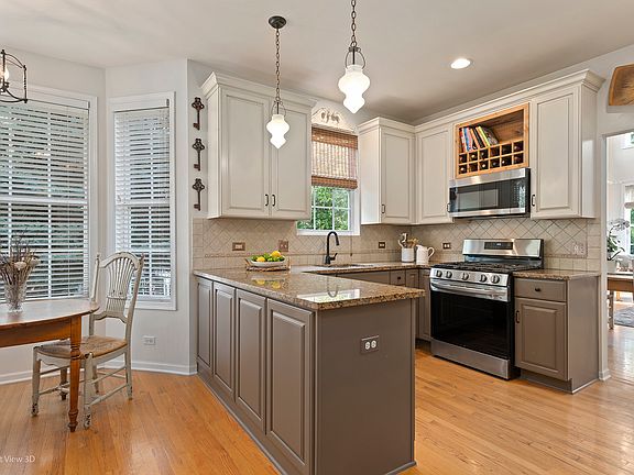 Absolutely Stunning END UNIT with Main-Level Primary Suite, Bright English Basement, and Over $26,000 in Recent Improvements! This is not just a home - it's a lifestyle. Nestled in a quiet 16-unit boutique community, this 3 Bedroom, Loft, 2.5 Bathroom, 2-Car Garage townhome blends privacy, elegance, and convenience in one remarkable package. From the moment you arrive, the partial brick exterior, private lot, and beautifully maintained gardens set the tone for the quality that continues inside. Step through your private entrance into a sunlit foyer, where gleaming hardwood floors flow across the main level. The open-concept living and dining room feels like a luxury retreat with its soaring vaulted ceiling, fireplace framed by floor-to-ceiling windows, and skylights that fill the space with natural light. Custom plantation shutters and wood blinds throughout the home add a touch of timeless elegance while providing privacy and easy light control. The 2024 remodeled gourmet kitchen is a chef's delight, featuring 2023 stainless steel appliances, elegant glass-front cabinetry with can lighting, a custom cookbook and wine rack, and a charming bumped-out breakfast nook surrounded by windows overlooking the woods - perfect for morning coffee or intimate meals. The main-floor primary suite is a rare find and a true retreat, showcasing a 2024 spa-inspired bathroom remodel with a premium glass shower upgrade, private soaking tub, and a generous walk-in closet. Upstairs, you'll find two spacious bedrooms (each with walk-in closets), a loft ideal for a home office or reading nook, and a pristine full bath. And then there's a massive 39x32 unfinished English-style basement with 9-foot ceilings and natural light from two sides. Whether you envision a recreation room, home theater, gym, or workshop, this versatile space offers endless possibilities - or incredible storage. Notable upgrades include: 2024 Lennox A/C, 2020 Carrier furnace, 2023 interior carpet, 2023 stainless steel appliances, and a freshly painted interior in a modern, neutral palette that's truly move-in ready. Step outside to enjoy your private deck, surrounded by a perennial front flower bed and a lush shade garden behind - just enough space for a gardener to play without feeling like work. Nearly every window frames peaceful wooded views, creating a sense of serenity throughout the home. The location is equally impressive, with quick access to I-94, Route 41, shopping, and dining - plus outdoor perks like the Des Plaines River Bike Trail and a neighborhood wooded walking trail just two blocks away. Homes in this exclusive community rarely come to market - and this one offers unmatched quality, thoughtful upgrades, and a lifestyle of comfort and convenience.