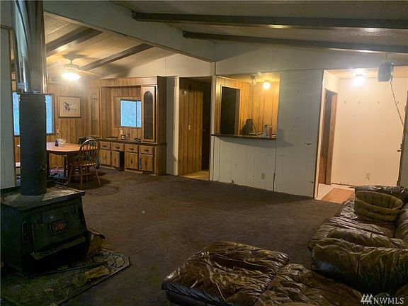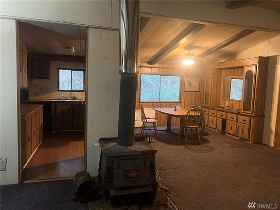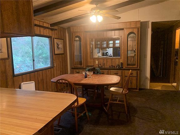 Enjoy secluded riverfront living on the Little Quil River. Fixer 1981, 3 BR 2 bath, 1400 sq' manufactured home. Approximately 380' of medium bank riverfront property with 4.8 acres. Small orchard above with additional building site & power. Excellent, plentiful water with underground power & 1995 3 BR septic septic system. Cross over the bridge to your getaway. Estate sale CASH ONLY. Mfg home has been moved once, so it will not finance with a conventional loan. BY APPT only, so contact your agent.