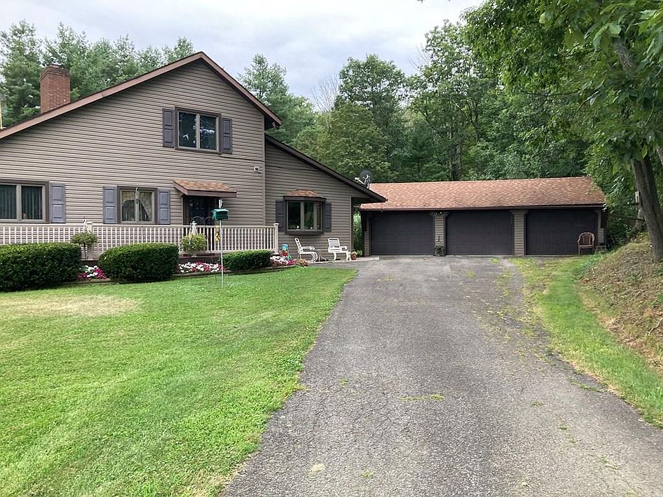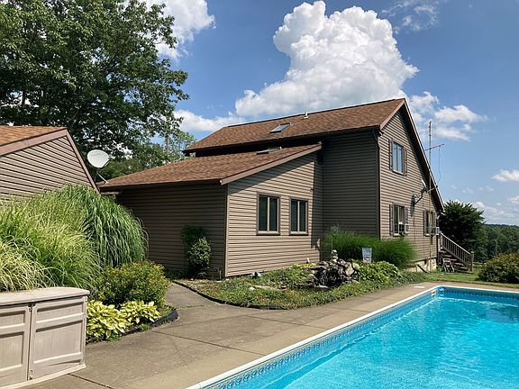 Beautifully kept 3 bedroom, 2 bath home located on 10 acres of land. Great home for country living and entertaining. Features a recreational room with a hot tub and bar. The bar has a refrigerator and sink built in and hot tub has its own 220 electric service. Living room features tongue and groove wood, two story Pennsylvania blue stone fireplace as a centerpiece, and skylights. Kitchen features an eat in counter as well as oak cupboards and stainless appliances. Property also includes a shed, barn with fenced pasture, and an 18 x 36 inground heated pool. Includes freezer in garage, two window a/c units, and all blinds/window treatments. Don't miss out on this amazing property!