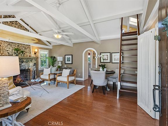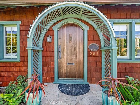 This rustic little cottage hardly gets noticed behind the shrubs and trees. A closer look, however, reveals a Cotswold door, delicate stone work and a wishing well. Located just blocks from Heisler Park and ocean views, this charming single family detached home rests on a desirable corner lot, offering both tranquility and privacy. With approximately 900 square feet of well-designed space in the main house, this residence boasts two bedrooms and a loft with one and half bathrooms, providing comfortable living for anyone seeking a peaceful coastal lifestyle.