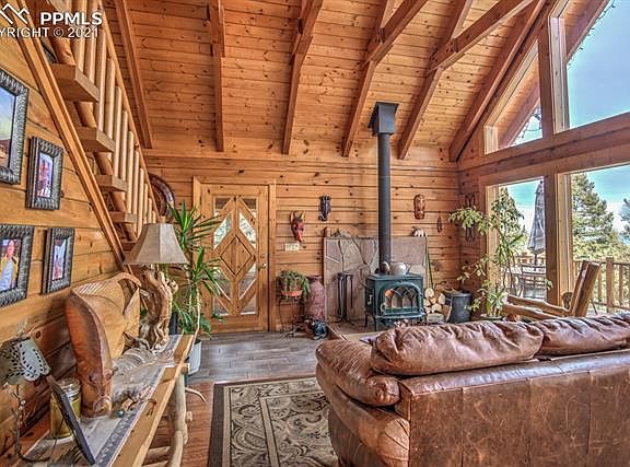 Immaculate Tennessee log home, Lakeview Model, built in 2000! Shows like new!!! Newer kitchen with granite countertops, tile floors, and stainless steel appliances. Open Concepts, with vaulted tongue and groove wood ceilings. Dining room sits off the kitchen, Living has a wood stove, and walk out to the large front deck. Enclosed sunroom, with walkout to covered deck. Master sits on the main, with a 5 piece attached bath, and his and her closets. Upper level could be used as a second master, or a 4th Bedroom, it is currently a family room, and office with a walkout to balcony. Lower level offers another family room, stove, and a wet bar. There are also two additional bedrooms with a full bath. Walk out lower level to hot tub area. Detached two car garage with finished room above garage with almost 427 SqFt. Would make a great game room, office, or whatever you like. Asphalt driveway, with retaining walls, and a great area with a large dog house. Privacy at its best, just minutes from Woodland Park, with Great views! A pleasure to show, come and see it today!