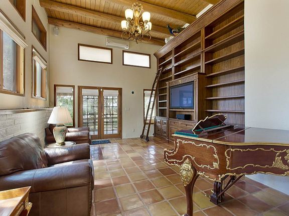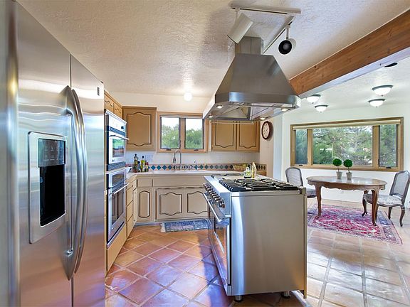 HIDDEN GEM-AVAILABLE IMMEDIATELY! This unique, single- level home is located on a spacious 1-acre lot off Rodeo Rd. cul-de-sac in Santa Fe's SE quadrant. Outdoor area is completely enclosed with fencing and contains its own water well. Inside, items including vaulted viga ceilings, saltillo tile floors, kiva fireplace, and clean, efficient kitchen, combine to create grace. Efficient kitchen includes stainless steel appliances and a breakfast nook. Large Master bedroom, and 2 modest guest bedrooms are well separated. Spacious library/living room, with grand built-ins, makes for a comfortable, relaxing atmosphere. Beautifully covered patios lead to well established landscaping, and mature tree covering! Unequaled value in location convenience. Access to hospitals, famous plaza, shopping malls, and many amenities at your fingertips. A recently reduced price invites you to visit this Gem for yourself!