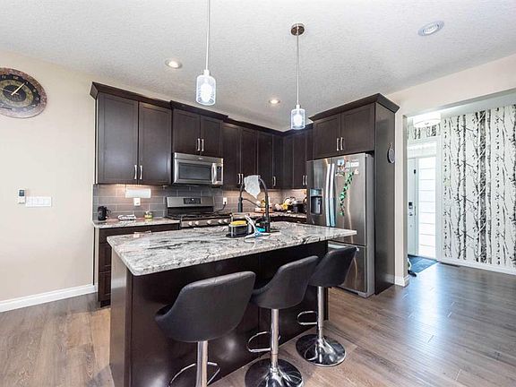 This former Genesis show home is fully upgraded and ideally located in Bayside. The main floor boasts an open floor plan with spacious principal rooms, pristine engineered high-end laminate flooring, a beautifully designed kitchen with full-height cabinets, striking granite countertops, and high-end stainless steel appliances, plus a main floor office that can serve as a fourth bedroom. Upstairs, you’ll find an expansive bonus room, a large primary suite complete with a 4-piece ensuite and walk-in closet, two generous secondary bedrooms, and a convenient laundry room with extra cabinetry. Designer wallpapered feature walls add character throughout the home, while the basement is insulated, wired, and drywalled—ready for your personal touch. Additional highlights include upgraded window coverings, central A/C, a large deck with a privacy screen, new vinyl and wood fencing, and a beautifully maintained yard with underground sprinklers.