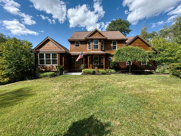 If you are looking for everything this is the home for you. Home sits on 3.39 acres of beautiful land with a 36x48 Morton barn that has 2 stalls but could be 6, or if you want a kennel it is set up with 5 doggy doors into barn has water and electric and can be heated if you want. Nice areas for pasture and also a chicken coop with water and electric. The home has been completely renovated in the last 2 years and offers front porch with Mahogany entry, Brazilian Walnut floors (IPE) in entry, office, living room and kitchen. Livingroom with vaulted ceilings,fireplace,opens into dining area in kitchen with doors to back deck, kitchen is perfect for the person who loves to cook. Soap stone counters, all new cabinetry, new stainless-steel Bosch appliances with Induction stove. Off kitchen is the laundry room with energy star GE washer and dryer. Office with those wonderful Walnut floors and the primary bedroom on main level with vaulted ceilings 2 step in closets and private full bath all new with porcelain tile in walk in shower and floor, granite vanity. Sunroom is beautiful with vaulted ceilings, skylights and slider to back deck, lots of natural sun light and a solid marble floor. Extra room on main level has own entry and could be perfect for in-law, home business. Home is heated with Central wood boiler or oil heat very easy to switch back and forth,Kubota Diesel whole house generator, underground utilities. If you are looking for a place to start a small farm and homestead 200 amp service, double Mahogany doors going into walk out basement, Gated driveway and ample parking, central vac, fresh paint throughout, has pond plus 2 running stream, lots of gardens, home never smoked in.