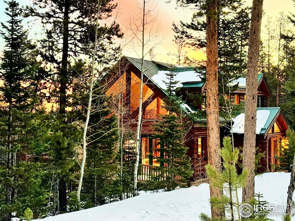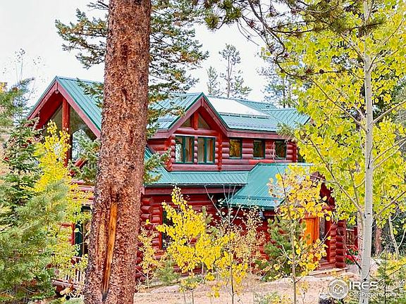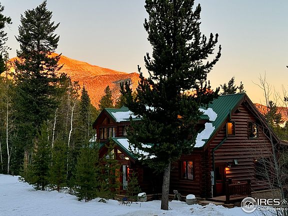 Discover this beautiful full log home nestled among the aspen and evergreen's. Located in the Triple Creek Ranch subdivision, you'll enjoy pedestrian access into Rocky Mountain National Park where you can hike directly to Ouzel Falls or cross country ski/snow shoe into the back-country. This custom log home was built with attention to every detail, offering high end finishes throughout. Bathed in natural light, you'll find vaulted ceilings, gleaming wood floors, divided light French doors leading to the deck and outdoor patio, gourmet kitchen with custom cabinets made by "Virgil", granite counters and professional appliances, living room gas log fireplace as well as a family room wood burning fireplace, a dedicated exercise room and so much more. The views are spectacular with Mount Meeker and Longs Peak from the upper level and Twin Sisters from the main floor. The grounds are wooded with landscaped rock gardens and a massive stone patio for outdoor entertaining. Come explore!