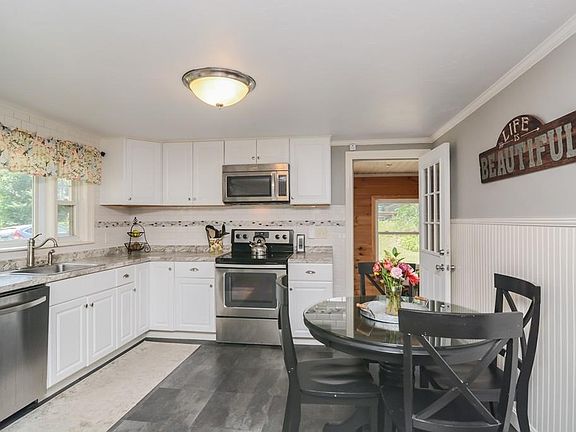 - Kit Dscrp: Flooring - Vinyl, Window(s) - Picture, Main Level, Dining Area, Stainless Steel Appliances, Exterior Access, Crown Molding