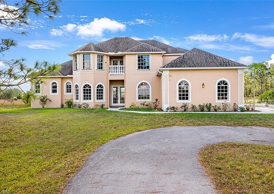 Your home, your castle. This is it!. Huge elegant home perfect for a big multigenerational family. Home features 6 bedrooms and 4 full bathrooms (3841 living square feet) (5451 total square feet). Featuring two master bedrooms (one downstairs and one upstairs). With a formal dining room, living room with 24’ soaring ceiling, Office/Den, spacious family room overlooking the screened-in lanai and spacious kitchen with granite countertops and stainless-steel appliances (new stove/dishwasher/microwave hood). NEW FLOORS on main floor. Nestled on 2.27-acre lot surrounded by beautiful homes. Close to Ave Maria University, Publix, Dunkin Donuts, CVS Pharmacy, houses of worship, Collier County rescue, and many more planned future commercial only minutes away. Newer roof (2006) and HVAC (2021).