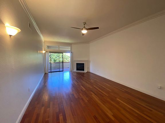 Spacious 3 bedroom, 2 bathroom condo in The Villas of Calavera Hills! 1,362 sq ft, with high ceilings, and gorgeous wood floors throughout. Kitchen is bright, with updated cabinets, and granite counter tops. Just off the kitchen is the lovely living room with a cozy fireplace and access to a large private patio. Down the hall is the first bedroom, perfect for a guest bedroom or home office. Full size washer and dryer in the unit. Primary and 3rd bedroom are at the back of the home. Primary en suite offers a double vanity, large walk in closet and additional large linen closet. 2nd balcony located just off the primary bedroom. The community offers a sparkling pool and is close to walking trails and shopping. HOA covers Water and Trash. Single detached garage is included along with one additional assigned parking spot. Owner will consider a single pet, cat, dog under 45lbs with $50 pet rent and additional $500 security deposit.