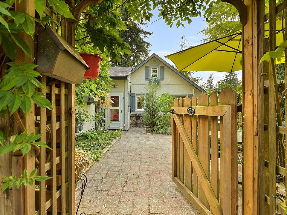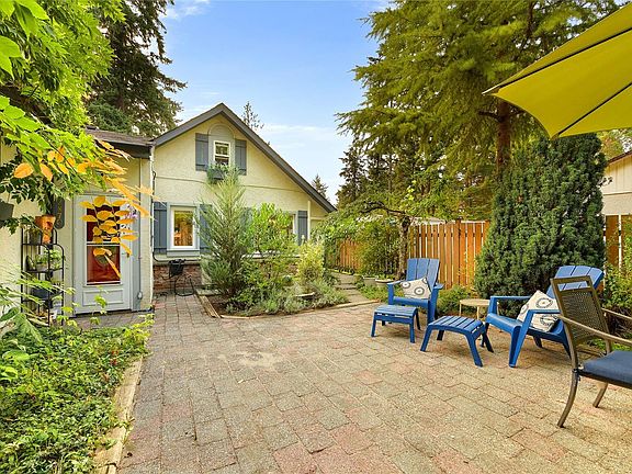 Welcome to 2870 Glen Lake Road – a charming and beautifully updated 3-bedroom home with a separate detached studio/office, perfectly situated in the heart of Glen Lake. Just steps to shopping, restaurants, theatres, the Westhills Y, parks, trails, and two lakes, this location offers the best of convenience and outdoor living. Enter through a welcoming courtyard and enjoy mature landscaping in both front and back gardens—ideal for relaxing in sun or shade. Inside, a cozy cottage feel is complemented by a gas fireplace, updated kitchen and bath, and two main-floor bedrooms. The private upper-level primary bedroom includes a walk-in closet and garden views. The detached studio is perfect for a home office or creative space. Recent upgrades include a new hot water tank (2025), heat pump (2022), gas fireplace (2020), and fresh paint. With ample parking, no strata fees, and a warm, functional layout, this move-in-ready gem is ready to welcome you home.