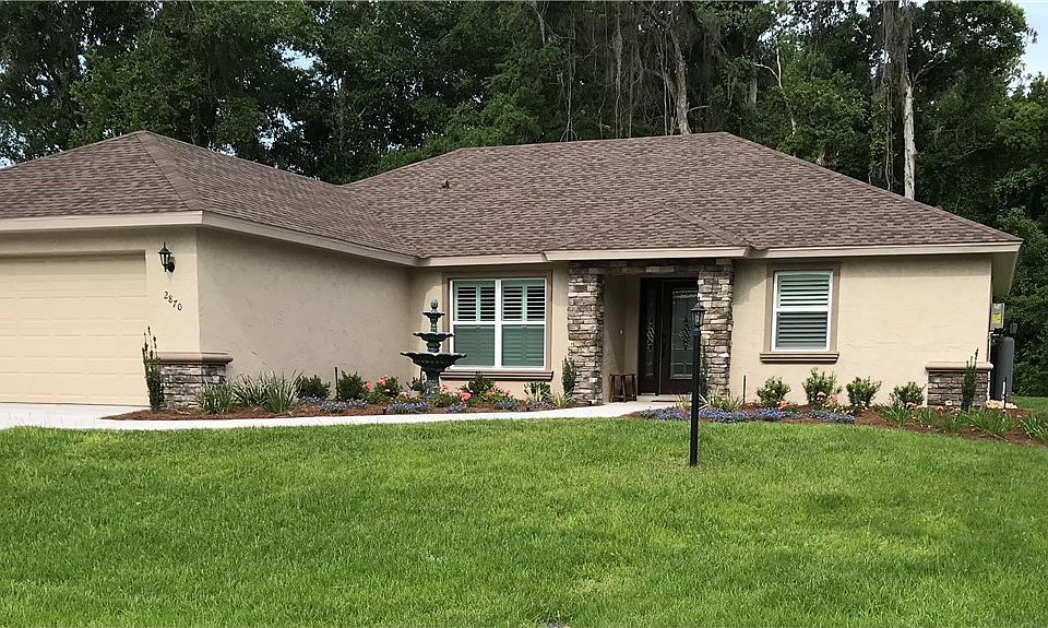 Wow! This lovely home is move in ready and located on a stunning wooded lot in desirable Canterbury Lake Estates. This Home has a Social Membership at Citrus Hills Golf and Country Club! Golf and Tennis Packages Available. Built in 2021 this 3Bedroom, 2Bath, 2Car Garage home boasts an open floor plan. Step through the front door and view the generous Living Room, Formal Dining Room, Family Room, Kitchen and Breakfast area from the moment you enter the home. This home offers many upgrades... Hand hewn Hickory floors throughout the home and lovely neutral tile in all the bathrooms and oversized laundry with plenty of cabinets. Desirable white cabinetry and granite countertops throughout this lovely home. The Primary Bedroom has two walk-in closets and the en suite bathroom has a walk in shower. Custom chandeliers, lighting and Crown molding in the public areas adorn the home. All the windows in the home have lovely white plantation shutters. There are matching ceiling fans throughout the home. Additionally you can entertain on the lovely screened lanai which runs across the back of the home or entertain at the Community Clubhouse and pool which are only steps away from your home. The Community location is excellent for commuting to work or pleasure with easy access to Ocala, Gainesville, Tampa or the beaches and sightseeing of the "Nature Coast". Don't miss out on calling this lovely property home.