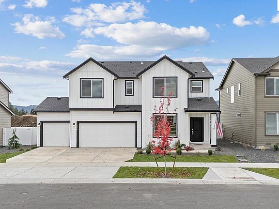 FANTASTIC PRICE!! Welcome home to this stunning, like-new multi-level Lennar-built "Stevenson" model home in the highly desirable Corbin Meadows community of Post Falls! Boasting 2,634 square feet of spacious, open-concept living, this bright and modern farmhouse-style home features an abundance of natural light and designer touches throughout. The gourmet kitchen, with a large quartz island, all appliances, and a generous pantry, seamlessly flows into the inviting great room and dining area, perfect for entertaining. With an additional office/den, a bonus room, and four bedrooms—including a luxurious primary suite with an incredibly spacious closet—there's room for everyone. Outside, enjoy the fully fenced and beautifully landscaped yard, complete with sprinklers & views and a massive three-car garage with plenty of storage. This home truly has it all—welcome to your dream home!