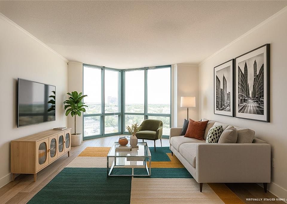 Boutique-hotel vibesEast-facing viewsStunning sunrisesFloor-to-ceiling windowsHand-painted accent wallWhite oak-look floorsRecessed lighting