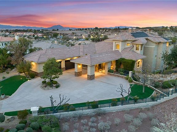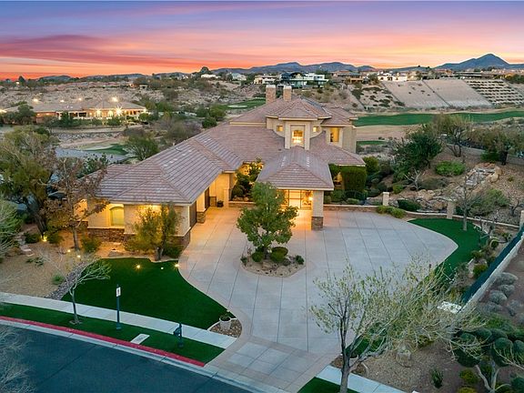 Exquisite Estate on the Rio Secco Golf Course located in the prestigious guard gated Community of Seven Hills. Breathtaking Views of the Las Vegas Strip and mountains. Bright home that has been updated throughout! Front wine room/separate dining room/cozy family rm w/gas fireplace. Large open kitchen and eating area with new backlit Quartz counters, top of the line Sub Zero appliances, separate wet bar, HUGE walk in pantry. Large Primary Suite on main level offers spectacular city/golf course views, sitting area, built ins w/fridge. Luxurious Primary Bath offering a large soaking jet tub or large shower/two separate toilet rooms+bidet. Custom closet/dressing room that offers it's own sink/washer & dryer. Basement offers, lrg bdrms w/jack-n jill bth. Oversized theater rm w/recliners/mini kitchen. Third floor offers large custom study w/library. Step out back to paradise with Infinity Edge Pool/Built in BBQ/Luxury custom putting green on the side of home. MUCH MORE!