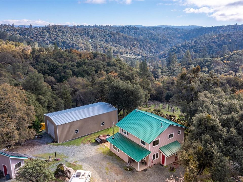 Discover your private mountain retreat in this beautifully maintained custom home set on a serene, park-like property. The open floor plan offers a light-filled living room with a warm wood-burning stove and a granite kitchen with stainless appliances. The main level includes a bedroom, full bath, laundry, and mudroom. Upstairs features two bedrooms, a versatile bonus room, and a spacious primary suite with a cozy propane stove, soaking tub, and separate shower. Enjoy true peace of mind with a fully off-grid, self-sustaining solar system plus a whole-house generator. Adjacent BLM land offers access to the Cosumnes River with scenic swimming holes and miles of hiking and riding trails. A 30x60 metal shop with roll-up door provides ideal space for RV/boat storage, vehicles, or workshop needs. Conveniently located near Fair Play wineries, Apple Hill, and just 90 minutes from South Lake Tahoe, this rare property delivers privacy, adventure, and comfort all in one. A must-see escape.