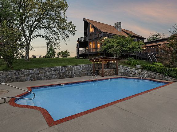 Stunning fireplacePanoramic viewsRustic charmExquisite stoneworkRefined eleganceInviting in-ground poolGourmet kitchen
