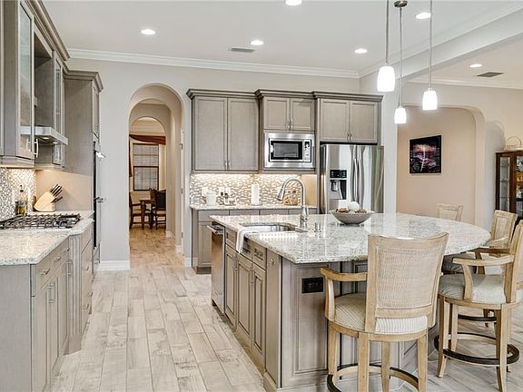 YOU DESERVE THIS! Designed for a casual, comfortable lifestyle, this stylish European Cottage Preston Floorplan is open and flowing. Upon arrival, you are greeted by the striking stone elevation and mature landscaping giving this home tremendous curb appeal. This home offers 5 br, 4 ba, Dining, Family Rm, Bonus Rm and a Loft. Dissolving lines between indoors and out are an abundance of windows allowing the sun-filled living areas to flow seamlessly to the outdoor living space overlooking the tranquil pond. An Entertainer's Dream! With luxurious custom touches such as crown mould, wood-look tile flooring, arches, stained oak stairs and tiered ceilings you'll be proud to call this home. The Chef's Kitchen has 42" wood cabinets, a Butler's Pantry, expansive working island, granite tops, wine refrigerator, stainless steel appliances incl double oven...a spectacular kitchen that truly is the heart of the home. The Master Suite which overlooks the pond is a private oasis. The Master Bath offers a modern claw-foot tub, his/her vanities, and a roomy shower with dual shower heads. A spacious walk-in closet completes the pkg. An additional bedroom and full bath are on the main floor. Upstairs the Bonus Rm, Loft, (3) more bedrooms and (2) full baths ensures this home has the space to meet your needs. Home is a pre-wired Smart Home. Located in the gated village of Toscana, Estancia is a master-planned community featuring resort-style amenities, top rated schools and is close to shopping and restaurants.