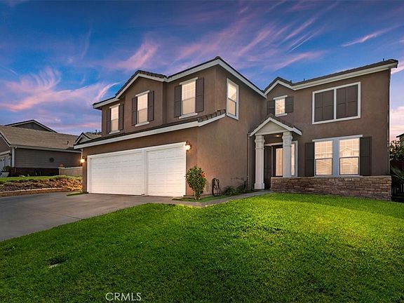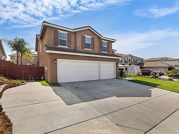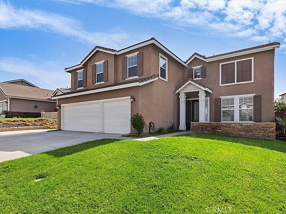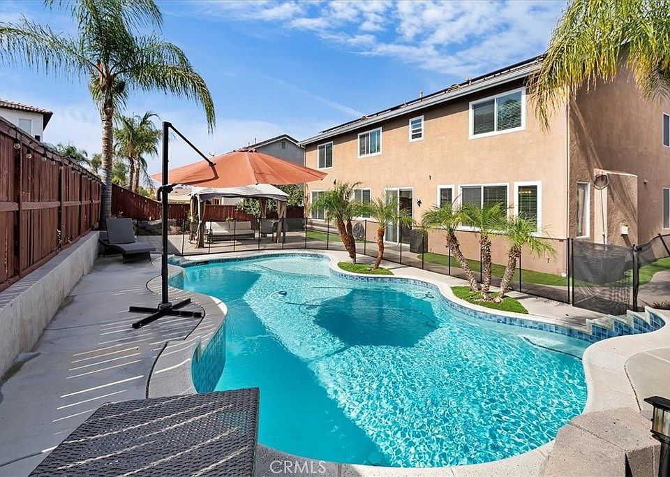 Welcome to your dream home in the heart of South Menifee! This stunning 2-story, 5-bedroom, 3-bathroom home, built in 2002, offers space, style, and comfort. The open floor plan features elegant porcelain tile wood flooring, a first-floor bedroom, and a full bath for guests or in-laws. The gourmet kitchen boasts granite countertops, stainless steel appliances, a large island, a walk-in pantry, and plenty of storage, perfect for family gatherings. You’ll find a huge loft upstairs, ideal for a second living room or home office. The primary suite is a true retreat with a luxurious ensuite bath, dual sinks, a soaking tub, and a walk-in closet. Three more spacious bedrooms and a full bath complete the second floor. The private backyard offers a tranquil oasis with a sparkling pool, perfect for relaxation. This home comes with PAID-OFF SOLAR PANELS, dual-zone A/C, added rain gutters, and a solar tube that fills the home with natural light. Located in a desirable South Menifee neighborhood with NO HOA, this South Menifee gem offers everything you need for comfort, convenience, and a touch of luxury. Don’t miss the chance to make this incredible home yours!