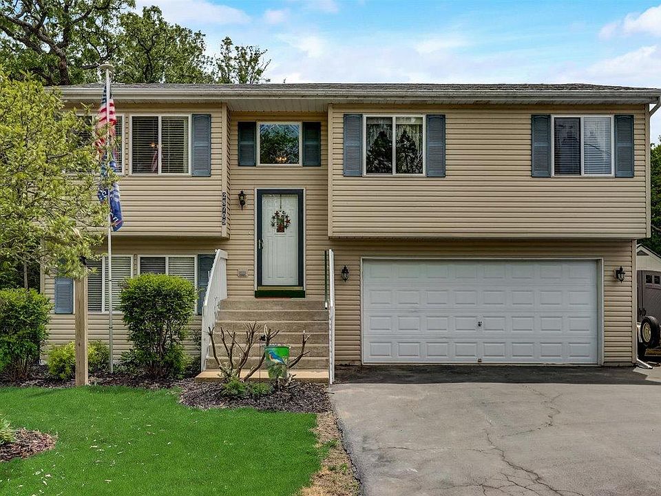Don't miss out on this well cared for home walking distance to Camp Lake. This home is move in ready. Owner took pride in all of the great updates completed from the new countertops, new upgraded appliances, bamboo flooring, new carpeting, fresh paint, renovated bathrooms, new roof, furnace and central air unit. There is not much to do but place your furniture and enjoy the peace and quiet on your deck, or patio overlooking your private wooded lot, or tinker in the spacious attached garage. There is even an extra packing space on side of garage for more parking space, maybe a boat?