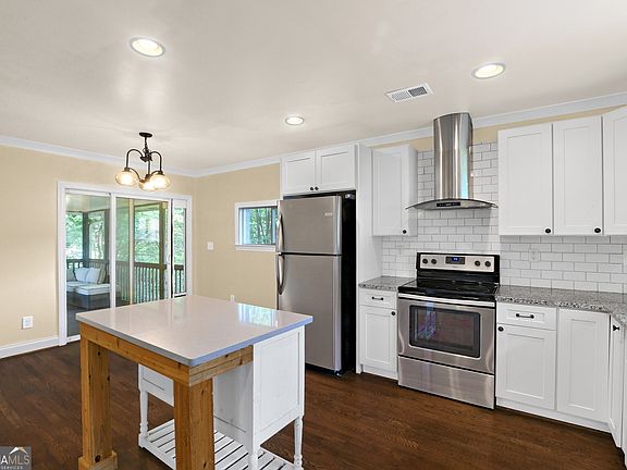 Charming all brick home located in Gresham Park. 3 bedroom and 2 full bath. Master bath suite comes with an extra large tiled shower, double vanities and large walk-in closet. Home has a massive basement with updated electrical that can be customized as a home gym, workshop, office space, home theater or simply for storage. Bright and open kitchen includes granite countertops, white cabinets, stainless steel appliances, subway tile backsplash and garbage disposal. Kitchen overlooks family room and eat-in kitchen. Real hardwood floor throughout the home. Large screened in porch comes fully furnished, and overlooks the private wooded backyard. Home comes with security system (door sensors, door and driveway cameras) that is controlled by phone app or console. Only a 6 minute drive from Sugar Creek Golf and Tennis Club, 7 minutes from Vela Park Food Works (opening soon)! Quick access to I-20 and I-285.