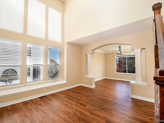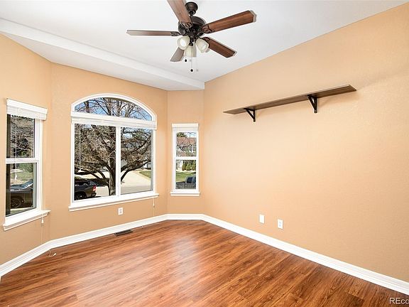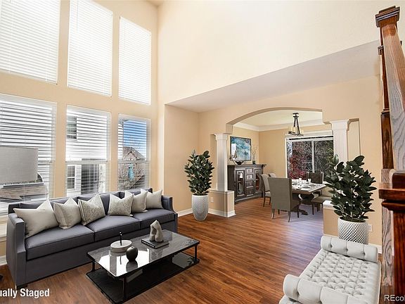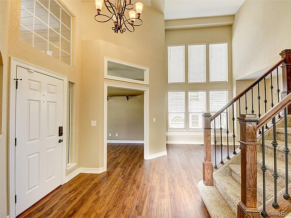 Experience Highlands Ranch living at its finest in this gorgeous 5 bed, 4 bath home with executive office. Step into the vaulted foyer that expands into formal living and dining rooms with crown molding. Spacious main floor office with bay window. Fully equipped chef’s kitchen includes stainless appliances, updated slab granite countertops, extensive upgraded cabinetry, and peninsula with under mount sink, updated tile flooring, and high end stone backsplash. Beautiful vaulted family room with large gas fireplace and 2 story custom surround has access to the new stamped concrete patio and backyard! Large laundry room with updated cabinets and access to fenced dog run area. Gorgeous wrought iron and wood railed staircase leads to your large primary suite featuring cathedral ceiling with impressive five-piece master bath, recently re-tiled shower, and walk in closet. Three additional bedrooms and full bath upstairs. Finished basement with additional bedroom, bathroom with low entry shower, large game room, exercise room, and finished storage room. Spread out and relax this summer in the open backyard with pergola, plenty of space to play and easy maintenance. Great location with short drive to shopping, recreation centers, and Douglas County schools. Walking distance to parks and trails. DON’T MISS OUT – MUST SEE!