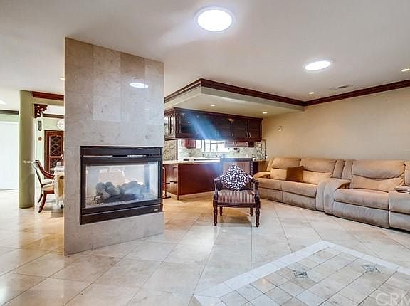 Welcome home. This is a beautiful, single story ranch style, 3 bedroom, 2 bathroom home which is located in a friendly neighborhood and only a few miles to the beach and FWY access. Home features a modern gas appliances see-through fireplace in the dining room and living room. Master bedroom is a sanctuary featuring a large bay window, a walk-in custom closet with organizer shelving, a large bathroom, huge 2 person jacuzzi soaker tub. The home has custom floor tile throughout with an open floor plan. Bedrooms have mirrored wardrobe closet doors. Separate enclosed patio off of the living room. Kitchen has a large built-in stainless steel oversized built-in refrigerator and a large 6 burner gas range perfect for entertaining a large family or in home entertaining. Plenty of cabinet space with granite counter tops, breakfast bar between the living room for that open feel. You will never miss family time living with this open living concept. Plenty of parking for 3-4 vehicles outside of the attached 2 car garage which includes interior home access. Possible RV or boat parking. Backyard has a covered patio ready to entertain and enjoy with a separate area for outdoor BBQing. Don't miss your opportunity to live in this custom updated home.