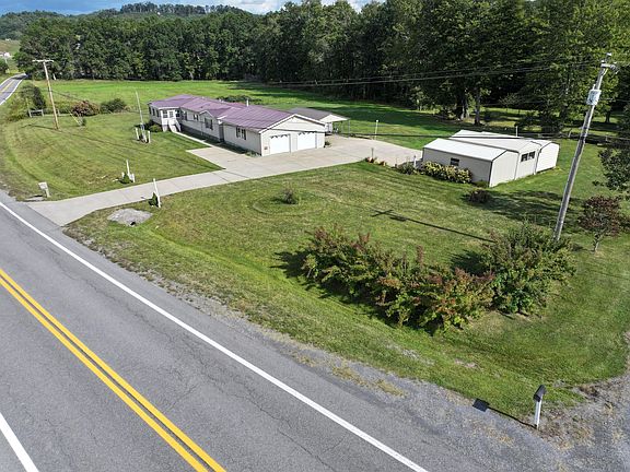 Grassy Flats. Located between Lewisburg and Beckley, the 46 acre property offers maximum opportunity and convenient living. House is a 4 BR, 3 bath upscale triple wide manufactured home with enclosed porches. ~4500 sq ft of concrete driveway, workspaces, and sidewalks. ~900 sq ft 4 car detached garage and 3 outbuildings. A spacious residence with open floor plan featuring a kitchen/ great room; cathedral ceilings; ensuite primary bedroom with additional flex space for office, nursery; convenient mud room with half bath; plus, an enclosed porch with hot tub, and windowed back porch for perfect nature viewing. Property is gorgeous, mostly level, large pasture, and plenty of room to expand pastures or expand for building sites. No restrictions, visible from I64, excellent road frontage. Additional Information on 2871 Grassy Meadows Rd, Alderson, WV 24910