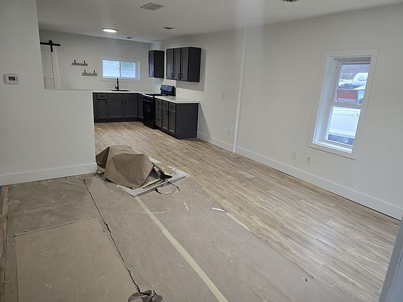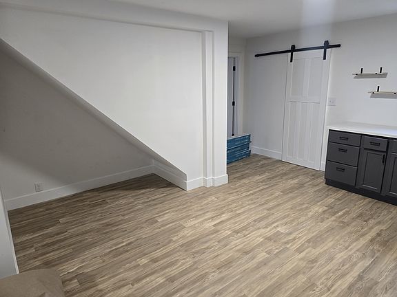 Great location, set back off the road with a huge lot in a neighborhood. House is completely remodeled, new everything, with an open floorplan. Main level has two bedrooms, both with large closets. Upstairs has one large room for recreation or bedroom. Stand up shower in bathroom, with all new flooring and fixtures. House also has a large enclosed front porch, as well as another partially enclosed deck in front.
