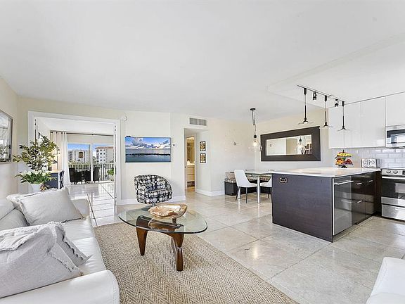 Private balconyWaterfront beach condoSleek finishesOverlooking the marinaStylish coastal decorTravertine floorsModern open-concept kitchen