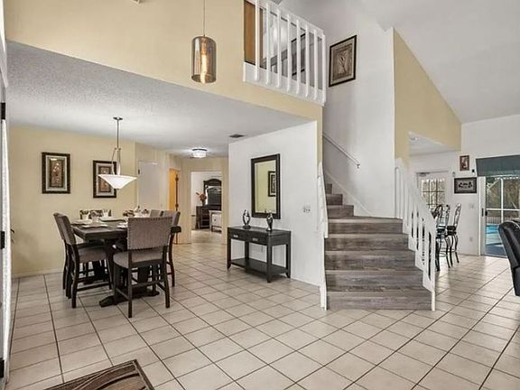 This amazing two-story single-family home offers plenty of space for you, your family, and friends. Featuring 5 bedrooms, 2.5 bathrooms, and a private screened pool with spa, this home is perfect for entertainment or simply enjoying the beautiful Florida weather. The extra-large covered lanai overlooks a spacious fenced-in backyard with no rear neighbors for added privacy.