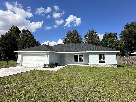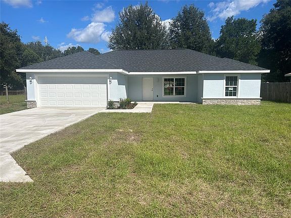 Beautiful new build ready for its first family! Located in the heart of Belleview, FL, central to both the Villages and Ocala. This 3 bedroom 2 bath house has all the best finishings including granite countertops, vinyl plank floors throughout, stainless steel appliances, and soft close cabinetry. The Master bedroom is spacious with a large walk in closet, while the master bathroom is equip with a double vanity and walk in shower. Large backyard that is newly fenced. Property is located one block off of paved road. Come take a look as this beautiful home as it will not last on the market long!
