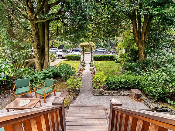 Covered front porchOriginal hardwood floorsHigh ceilingsLarge windowsFully equipped kitchenStainless steel gas rangeQuartz countertops