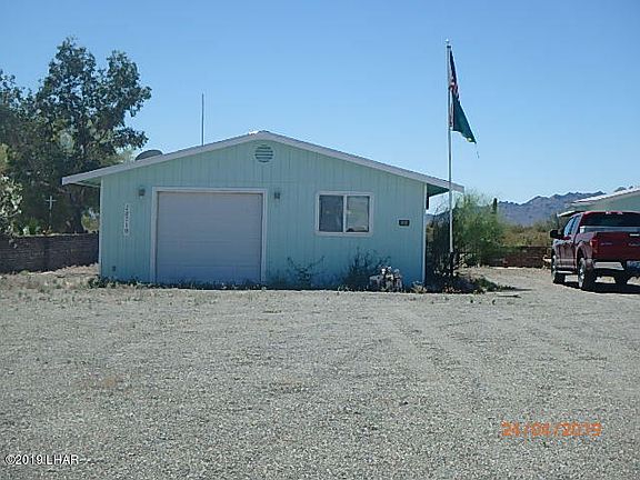 HERE IS THE OPPORTUNITY TO GET A DESERT LOT. This lot has immediate access to the desert. The 1 bed/1 bath home has been constructed for winter living. With the improvements to the original building, it now measures 24 X 48. The yard is 152 ft deep with 4 RV hook ups. You can have several guess at on time. The open floor plan connects the kitchen, living room and sitting room. The home has a roll up door that permits one to store their ATVs and small vehicles when gone.