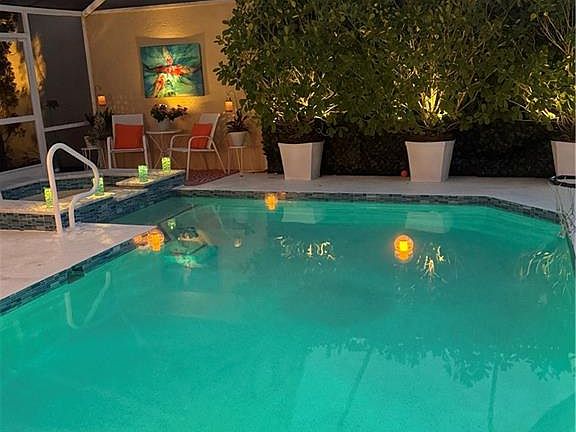 Welcome to your Bonita Springs Lakeside Paradise! This fully remodeled, 3 bedroom/2.5 bath with loft Villa boasts your own lanai, pool, jacuzzi, and Blackstone griddle. A private courtyard leads you into this stunning, open concept contemporary home with soaring ceilings providing a sun drenched tropical atmosphere. The kitchen has updated cabinets, counter tops, appliances, as well as a full sized washer and dryer closet. The primary suite is on the first floor complete with a walk-in closet, shower and jacuzzi tub. Next to the kitchen is a bedroom with a queen bed and a powder room. Upstairs is a loft with a queen bed, a bedroom with a walk-in closet, and a full bathroom. Carmel at Vanderbilt Lakes is a double gated community that's only a four minute drive to Bonita Beach and 20 minutes to Ft. Meyers airport. Tons of shopping, restaurants, and entertainment including Coconut Point and the Mercado are only 12 minutes away. The villa includes a 1 car garage, new patio funrnishting, new ceiling fans, beach chairs, toys, boogie boards, and 2 beach cruiser bicycles.