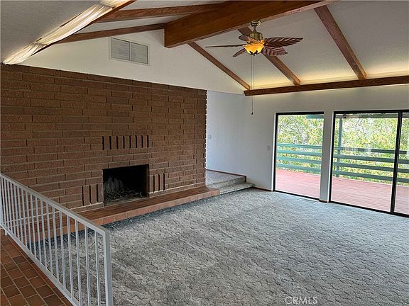 - Beamed Ceilings, Ceiling Fan(s), Central Vacuum, Separate/Formal Dining Room, Eat-in Kitchen, High Ceilings, Intercom, Living Room Deck Attached, Open Floorplan, Pantry, Quartz Counters, Stair Climber, Storage, Sunken Living Room, Unfinished Walls, Bedroom on Main Level, Main Level Primary, Primary Suite, Walk-In Closet(s)
