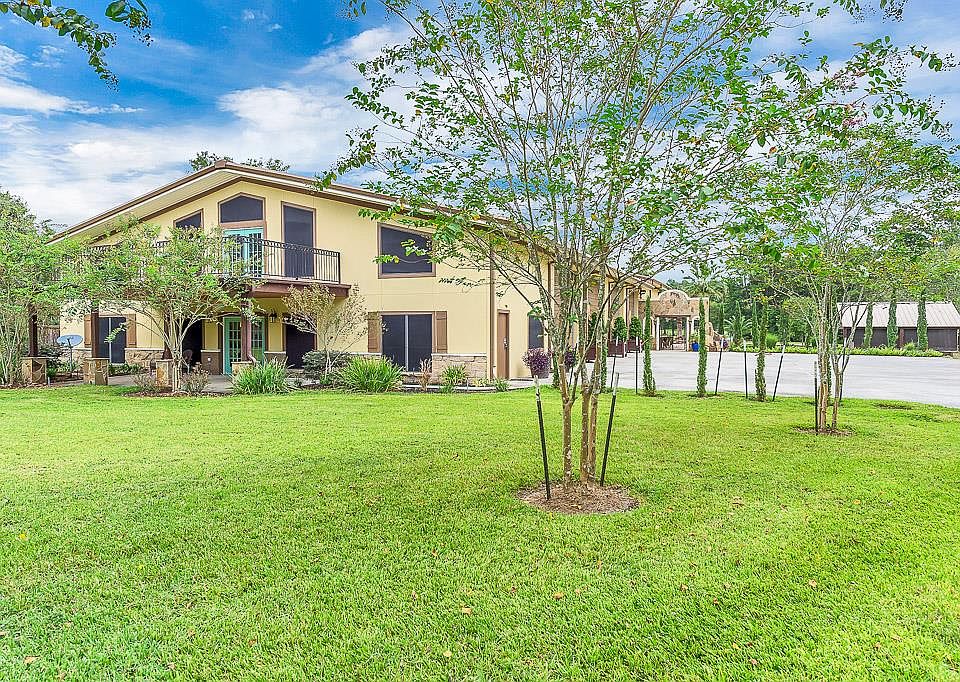 Entertainers resort property on 5 acres in Pinehurst near The Woodlands. Behind gates the drive takes you to a 60 x 60 garage. Formal entry opens with double doors and has wood floors as does much of the first level. Its also open to the dining that includes a lighted tray ceiling. Open living space has soaring ceiling and fireplace with views of the sparkling pool. Island kitchen highlights- granite, stainless apps, gas cooktop, 2 sinks, 2 dishwashers, built-in Kitchen Aid fridge and pantry room. Primary suite has a remodeled bath, immense walk-in closet and the laundry is attached. Upstairs has 2 bedrooms with ensuite baths, library / game room and media room with an adjacent Texas Basement. Separate apartment with another bed, bath, kitchenette, bar / gameroom, workout, storage and study. This is the perfect guest suite or place to work from, no HOA. Outdoor fun -party pavilion, covered patio, pool, spa pond and pergola. Extras - generator, RV hook up and horses allowed.