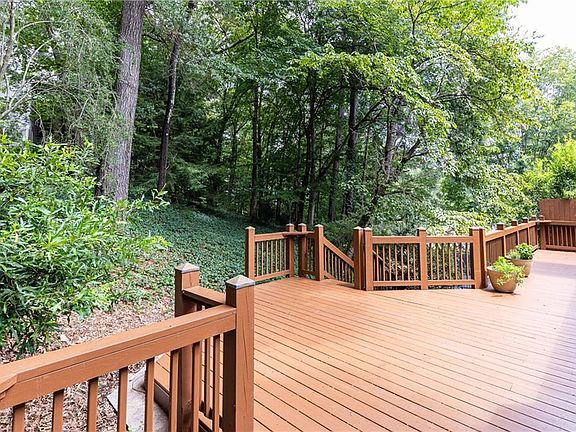 Discover turnkey living in this beautifully maintained single-family home offering almost 4,000 square feet of living space in the sought-after Courtyards at Vinings, a hidden gem on a corner lot located inside the perimeter. This 3-bedroom, 3.5-bath residence delivers exceptional comfort, space, and convenience in a prime Vinings location. Step inside to find hardwood floors throughout the main level, including in the chef’s eat-in kitchen featuring a Wolf gas cooktop, new dishwasher, and custom cabinetry. The spacious primary suite is located on the main level and includes a fully renovated luxury bathroom with a soaking tub, expansive shower, and a generous California closet. Ideal for entertaining, the home features separate formal living and dining rooms, a gas log fireplace, and peaceful wooded views. Step out onto the newly stained deck, perfect for hosting guests or enjoying a quiet morning coffee. Upstairs, two oversized bedrooms each offer private en-suite bathrooms and ample closet space, making them ideal for children, guests, or multigenerational living. The walk-out terrace level provides incredible flexibility with a large open space currently outfitted as a game and media area, complete with a wet bar and half bath. Just outside, the covered patio extends the living area outdoors with room for multiple seating areas. This home also includes a new roof installed in 2024, tankless water heater, custom shutters, separate HVAC for the second floor, a large workroom in the basement, and plenty of storage throughout. The HOA maintains the front yard, and community amenities including the pool and tennis courts are just 100 yards from your front door. Perfectly situated in the heart of Vinings, this home is just moments from shops, restaurants, and offers easy access to all of Atlanta. An optional furnishings package is available for an additional cost.