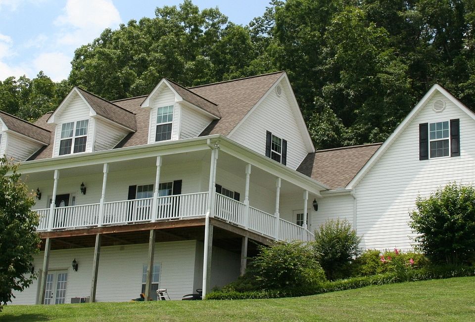 Beautiful southern home with wrap around porches and million dollar views! With over 4900 sq. ft. there is space for even the largest family and 5 acres to enjoy, too. Every bedroom is over-sized and has multiple walk-in closets. Lovely bamboo flooring,spacious open floor plan and tongue and groove ceilings and gas log fireplace in the living room. Has second bedroom on main floor or an office.