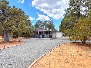 Nestled in the White Mountains, this charming 2bd/2ba home on .50 acre is the perfect mountain retreat! Step into a warm, spacious living room which features a pellet stove for those chilly nights, The modern kitchen has new stainless steel appliances and plentiful cabinets which provides ample storage. The primary bathroom features a deep soaking tub. Laundry inside which adds convenience. Electrical updated in 2024. Exterior boasts a 720 sq ft detached garage which features plenty of room for all your toys, new durable metal roof, large outside patio which is perfect for entertaining, RV hookups, and fully fenced yard ensures privacy and security, making it perfect for pets or peaceful relaxation. This gem checks all the boxes for your best mountain life so schedule your tour today!