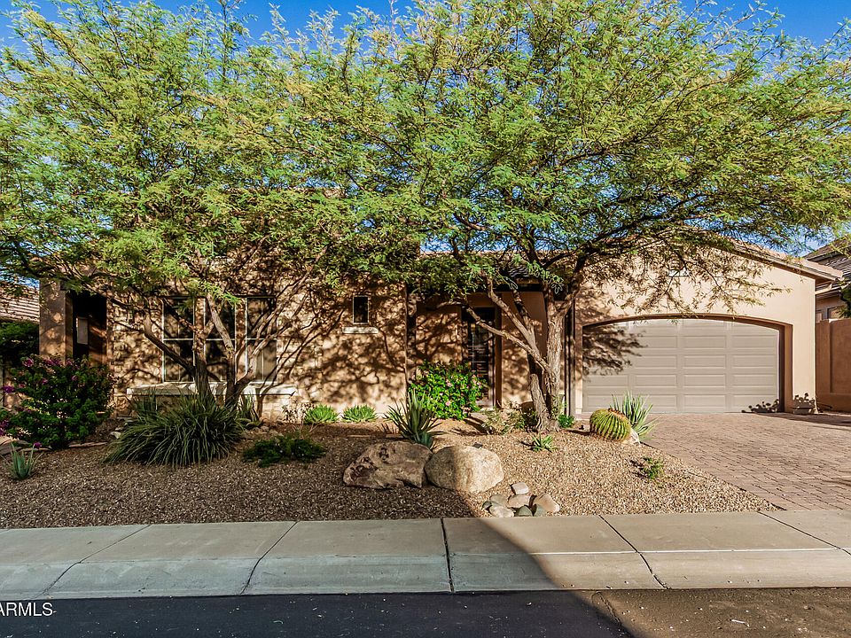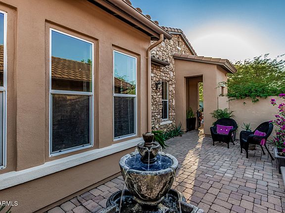 Your dream home awaits in Sonoran Mountain Ranch, crafted by Camelot Homes and packed with timeless elegance and high-end design. This 4-bed, 3-bath beauty backs to a peaceful wash and offers privacy, mountain views, and a resort-style pool for the ultimate Arizona lifestyle .From the paver-lined courtyard with fountain to the exposed wood beams & dramatic atrium fireplace, every space is designed to impress. Inside, enjoy soaring ceilings, custom lighting, plantation shutters, and a flexible layout that includes a formal living room, private office, & spacious family room. The gourmet kitchen is a showstopper with granite counters, SS appliances, gas cooktop, a custom brass range hood, and oversized island perfect for entertaining. The luxurious primary suite includes a sitting area, spa-like bath with walk-in shower, soaking tub, dual vanities, and huge walk-in closet. Secondary bedrooms are generously sized, including one with built-in shelving, perfect for a guest room or library. With pre-wired surround sound, upgraded fixtures, and views from nearly every window, this home checks every box. Outdoors, enjoy a resort-style yard with pool fountains, covered patio, and a backdrop of Sonoran serenity.