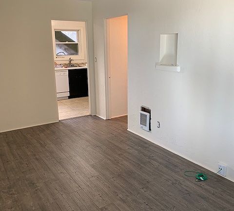 No pets, no parking, water and trash paid by owner, electricity paid by renter, free shared laundry, heat, no AC.