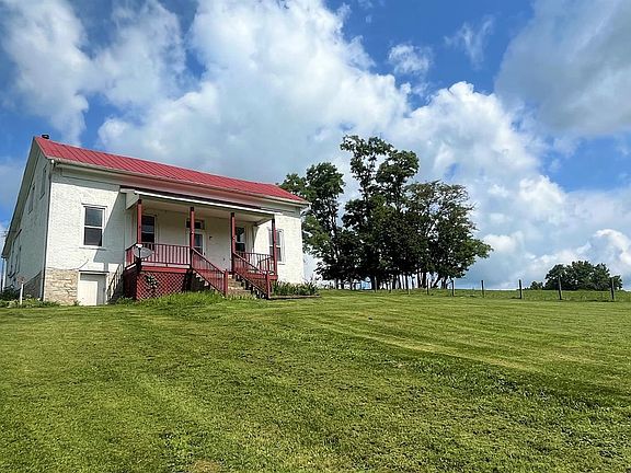 77 acres of beautiful rolling land with valleys fenced for livestock, two auto water areas for livestock. 3 outbuildings with electric. Home features many updates. 3 bed & 1 bath, freshly painted throughout. Covered front porch overlooking creek.