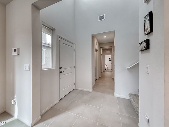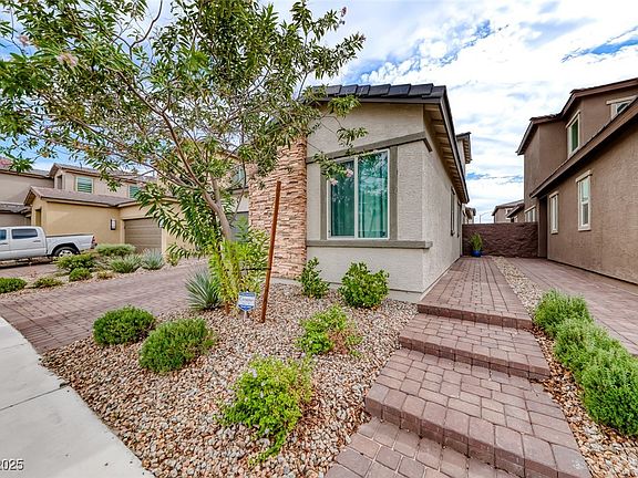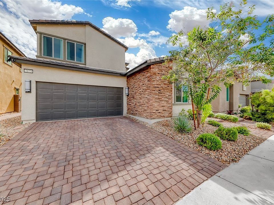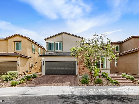 Located in highly desirable Palmer Ranch this stunning 2,038 SF home built in 2022 is almost like new. It features 4 bedrooms, 3 bathrooms, a loft, and a 2-car garage with 2 bedrooms and 2 full baths on the 1st floor and 2 bedrooms, a full bath and a loft on the 2nd floor. The open floor plan features abundant natural light, high ceilings, and tiled floors in the main living areas. The kitchen features an oversized island with breakfast bar, ample cabinet and pantry space and stainless-steel GE appliances.The primary suite includes a luxurious bath with soaking tub, walk-in shower, dual sinks, and walk-in closet. Enjoy seamless indoor-outdoor living with double sliders opening to a large, covered paver patio with recessed lighting and a spacious backyard featuring artificial turf and stone groundcover. Modern upgrades include a whole-house reverse osmosis system and a tankless water heater. Located near a community park, VA Medical Center, Nellis AFB, and easy access to I-15 and I-215.