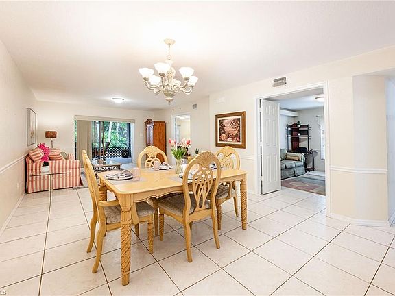 Surpass your expectations, not your budget! It is an ideal location just south of Bonita Beach Road, convenient to Bonita, Naples, airports and beaches. A three-bedroom first-floor condominium with a screened lanai and an additional open patio with private garage entry. This gated community offers a sparkling heated pool, spa, bocce and community pavilion for activities. Financially sound with lower fees, high elevation and no storm impact throughout the years. A new roof in 2022, a newer air conditioner, a newer tankless water heater, and electric storm shutters. Neutral tile throughout. Offered as turnkey. There is no snow here!